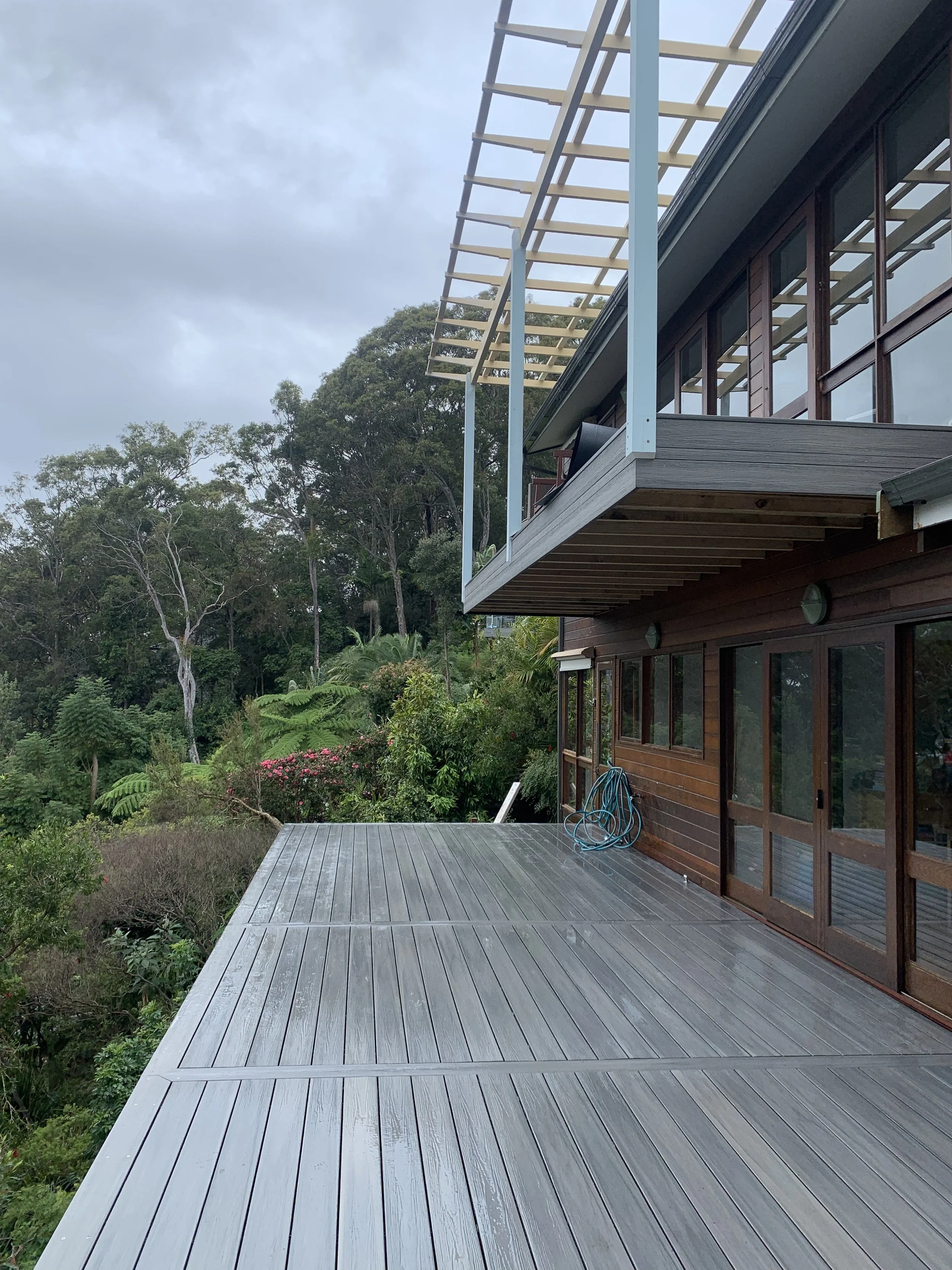 This one was full of challenges, with a good size gum tree growing through the original deck, steep access to deal with and a stair case to link the deck and lower garden areas. We ran with a maintenance free composite deck made by ‘Evalast’, utilising frameless glass as our balustrading for the middle and upper decks. The views here are stunning, and this upgrade has provided a young family with maintenance free, outdoor living at its finest.